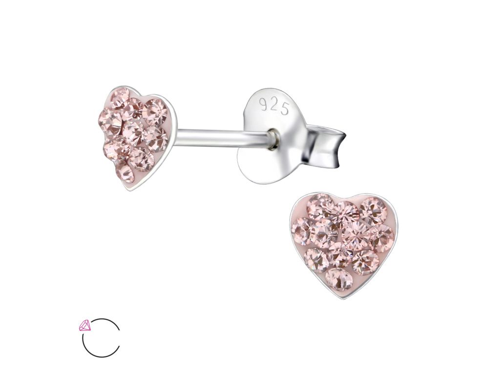 0107 Dětské stříbrné náušnice SRDCE se Swarovski krystaly Ag 925; ≤0,45 g.
