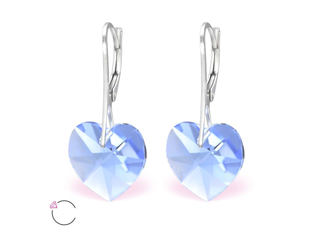 1103 Stříbrné náušnice SE SWAROVSKI KRYSTALEM SRDCE SAPPHIRE LIGHT Ag 925; ≤0,90 g.