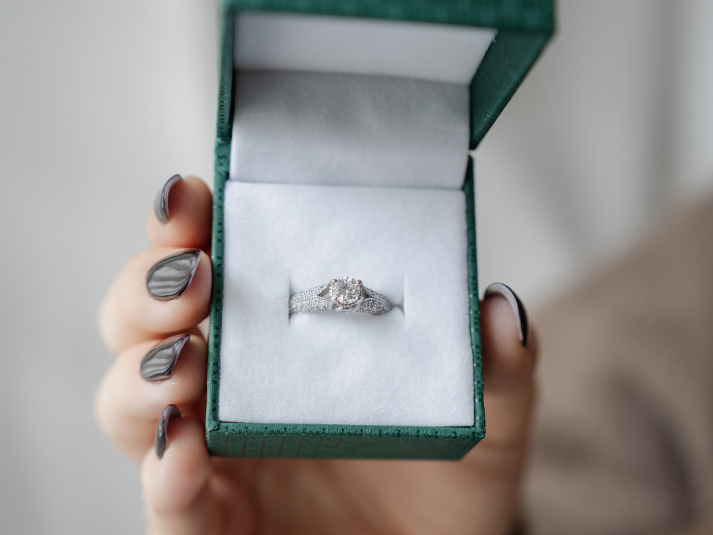 Úžasný, třpytivý prsten vhodný k zásnubám nebo jiné významné události.