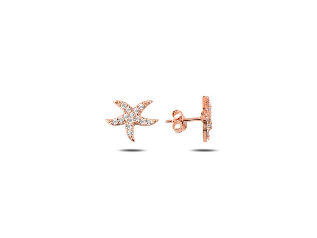 Náušnice s motivem mořské hvězdice s čirými zirkony a růžovým zlacením.