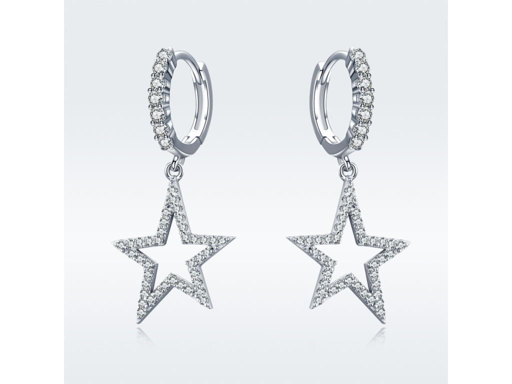 STŘÍBRNÉ VISACÍ NÁUŠNICE HVĚZDA