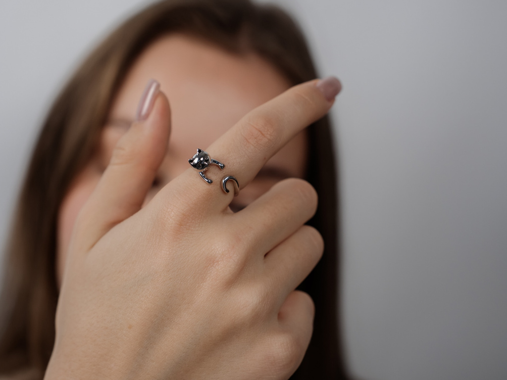 KOČKA STŘÍBRNÝ PRSTEN - NASTAVITELNÁ VELIKOST