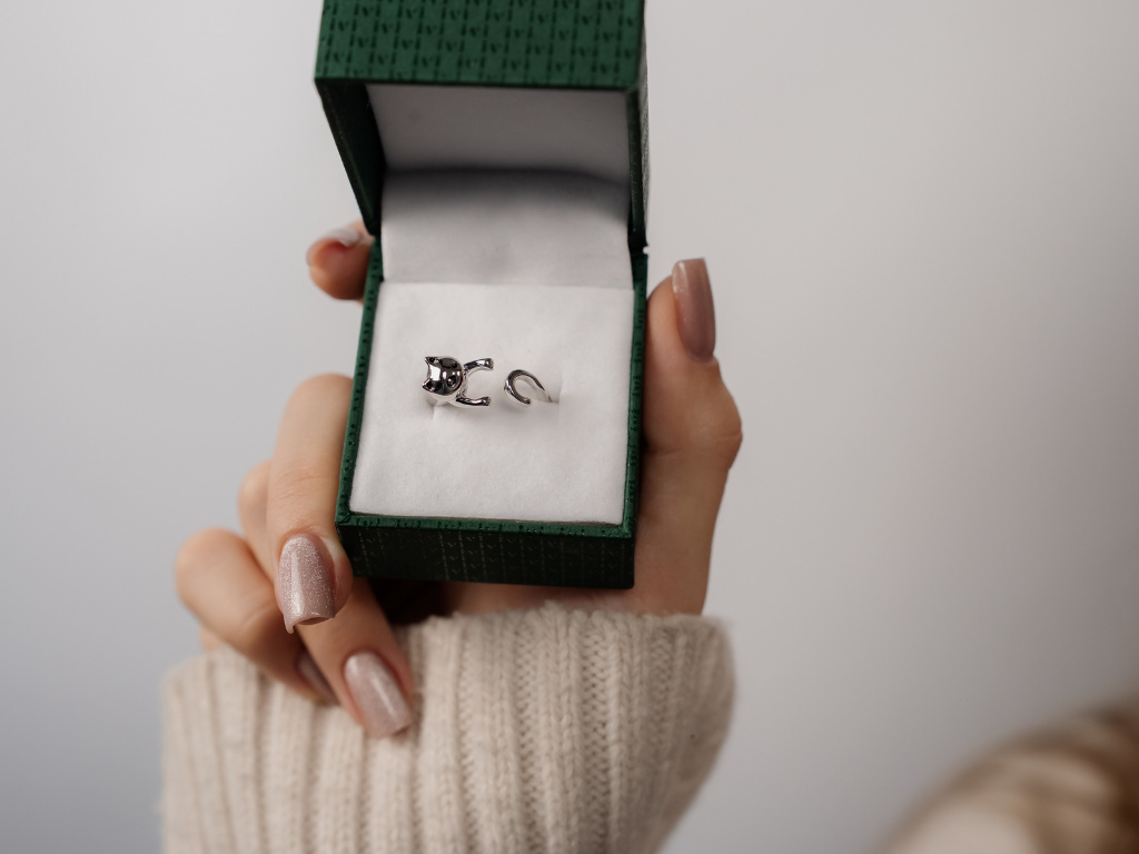 Prstýnek je vyrobený ze stříbra 925/1000 a je označený puncem ryzosti.