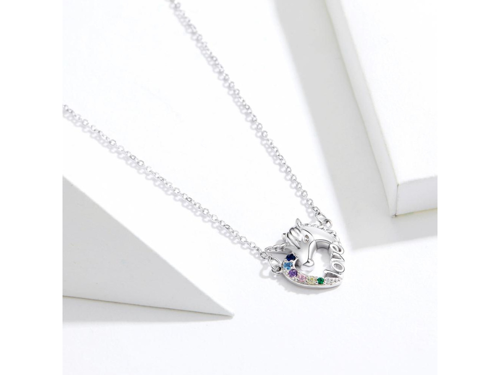 3412 Stříbrný náhrdelník JEDNOROŽEC V SRDCI Ag 925; ≤2,6 g.