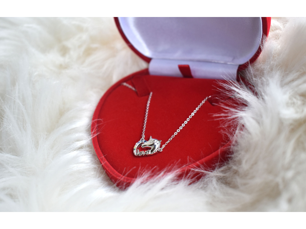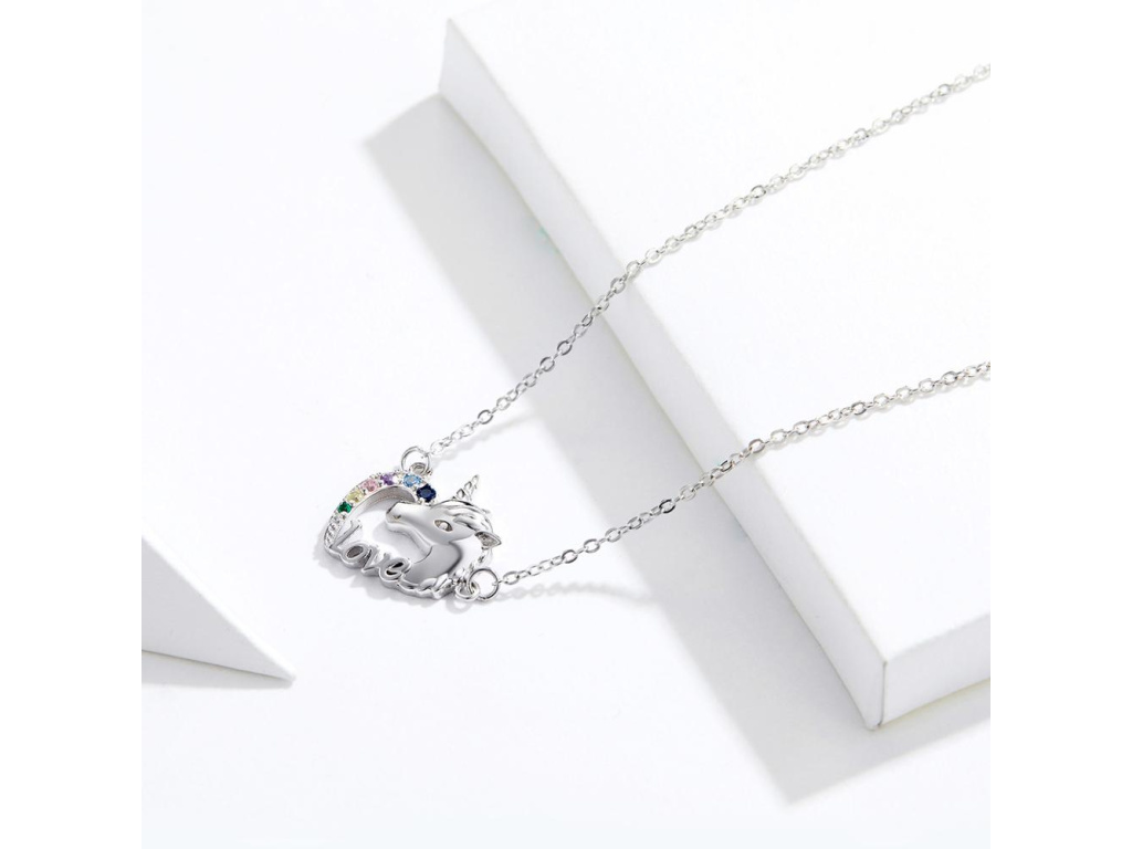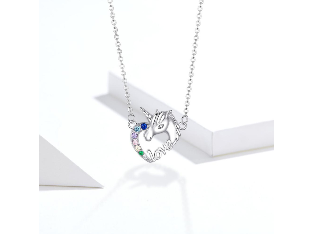 STŘÍBRNÝ NÁHRDELNÍK JEDNOROŽEC V SRDCI