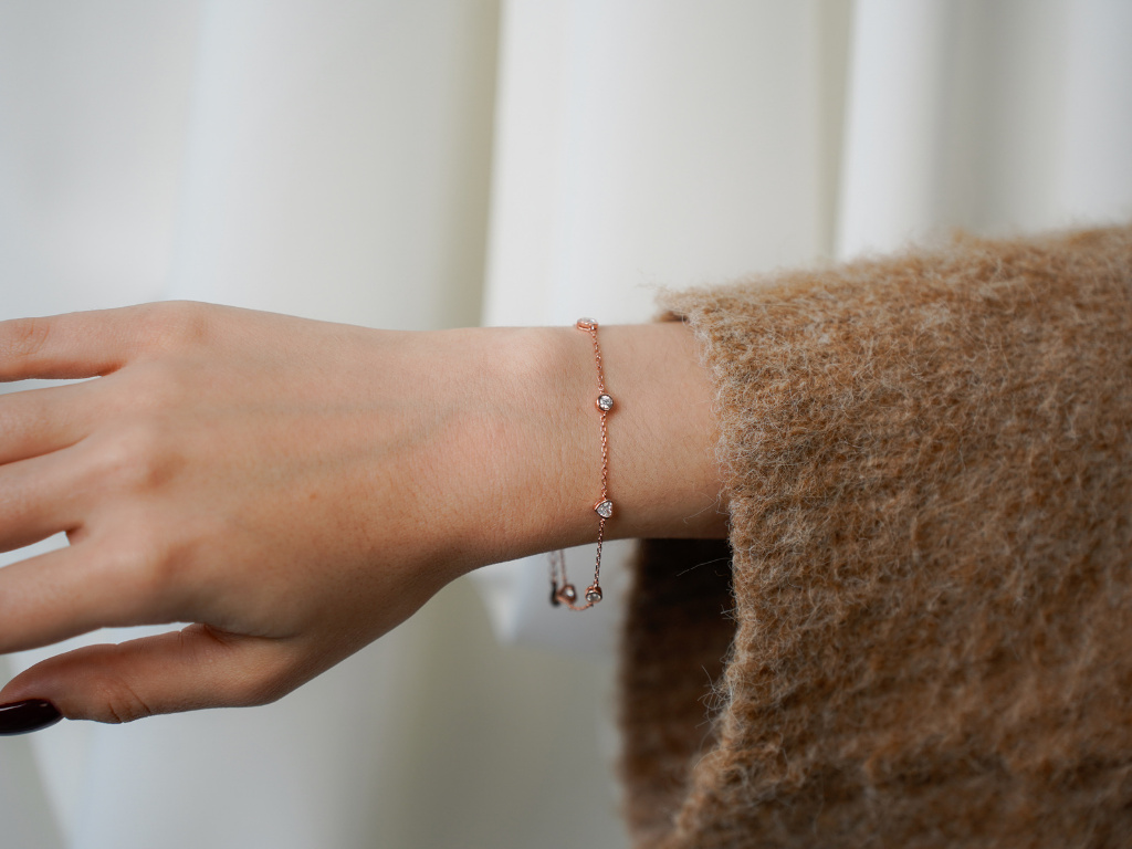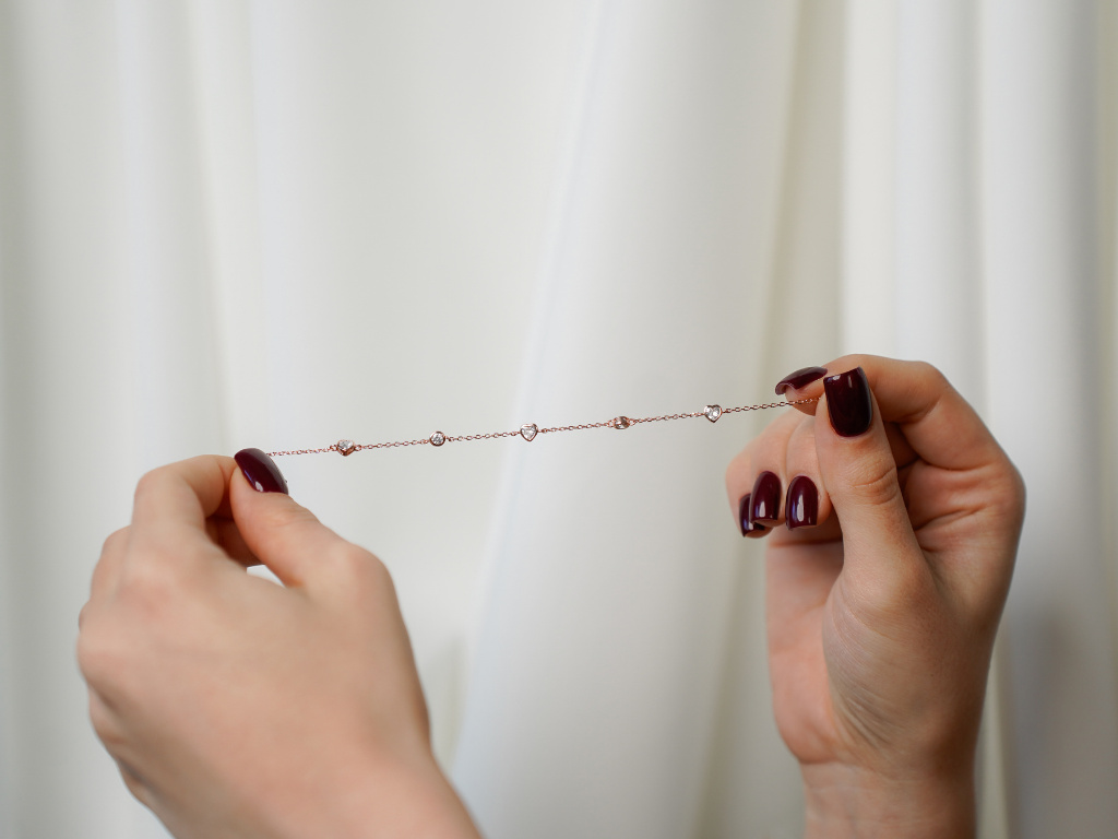 3442 ROSE srdíčkový stříbrný náramek Ag 925; ≤1,8 g.
