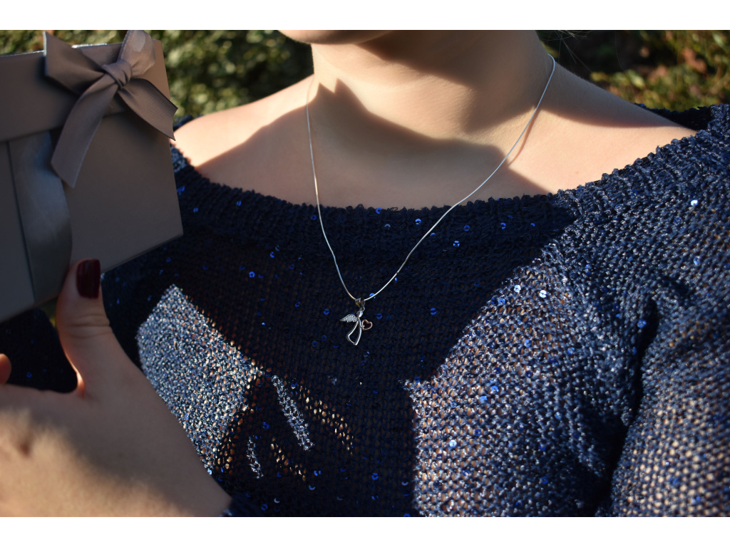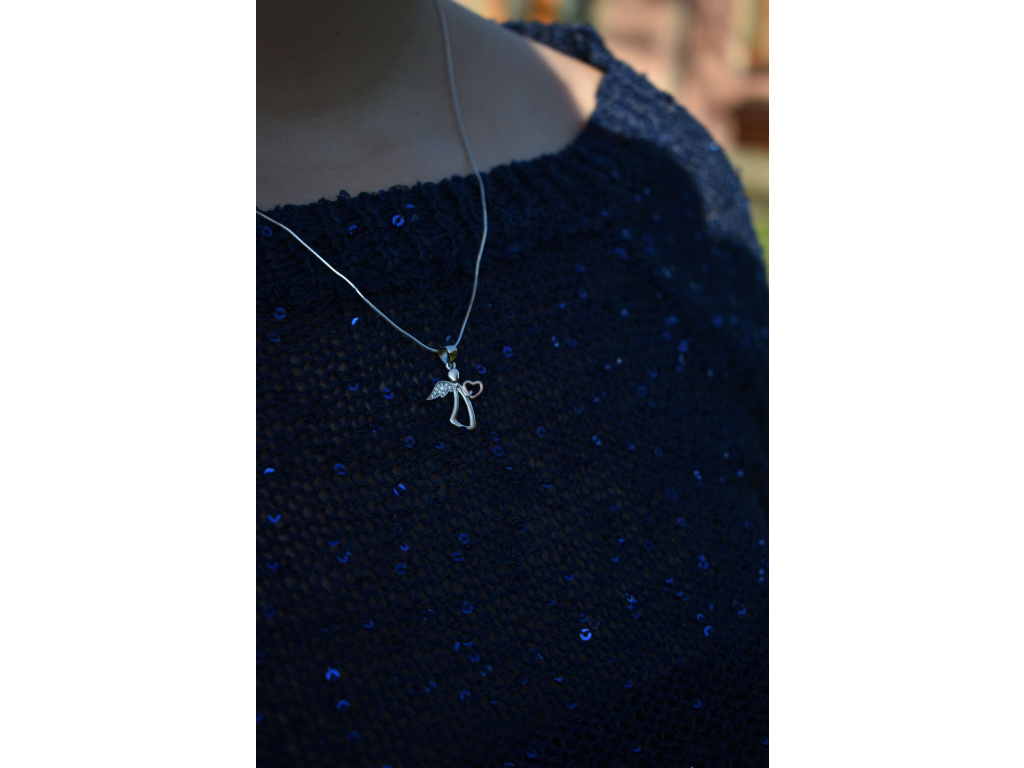 • Nádherný stříbrný anděl se zlatým srdíčkem.