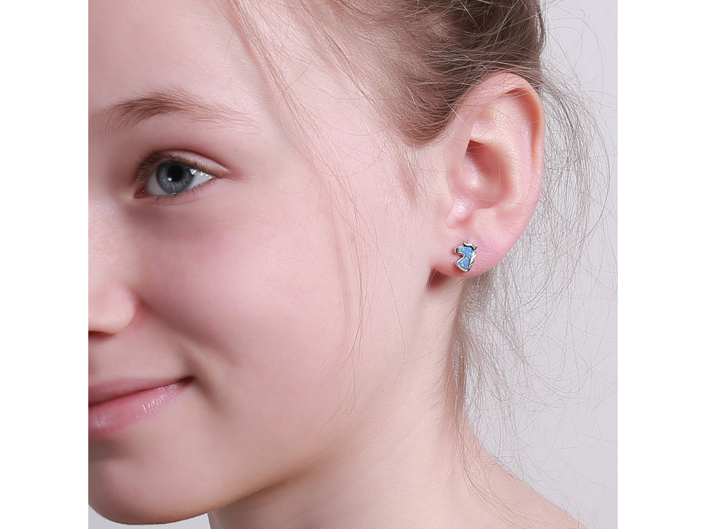 3774 Stříbrné náušnice OPÁLOVÝ JEDNOROŽEC Ag 925; ≤1 g.