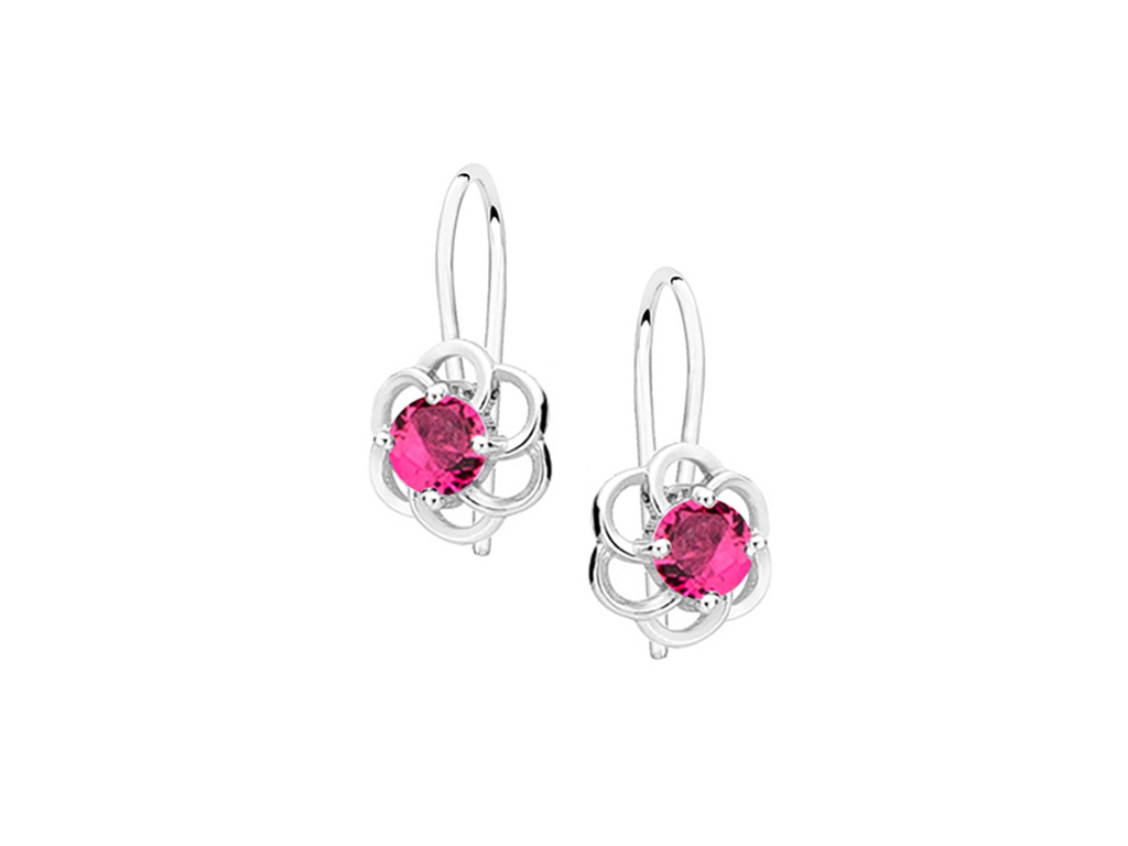 4155 Stříbrné dětské náušnice s rubínovým kvítkem Ag 925; ≤1,2 g.