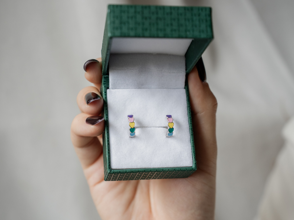 4317 Stříbrné náušnice BAREVNÁ SRDÍČKA Ag 925; ≤1,6 g.