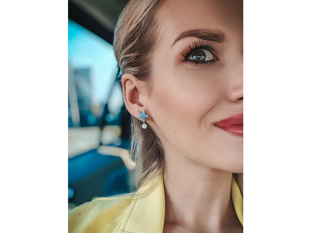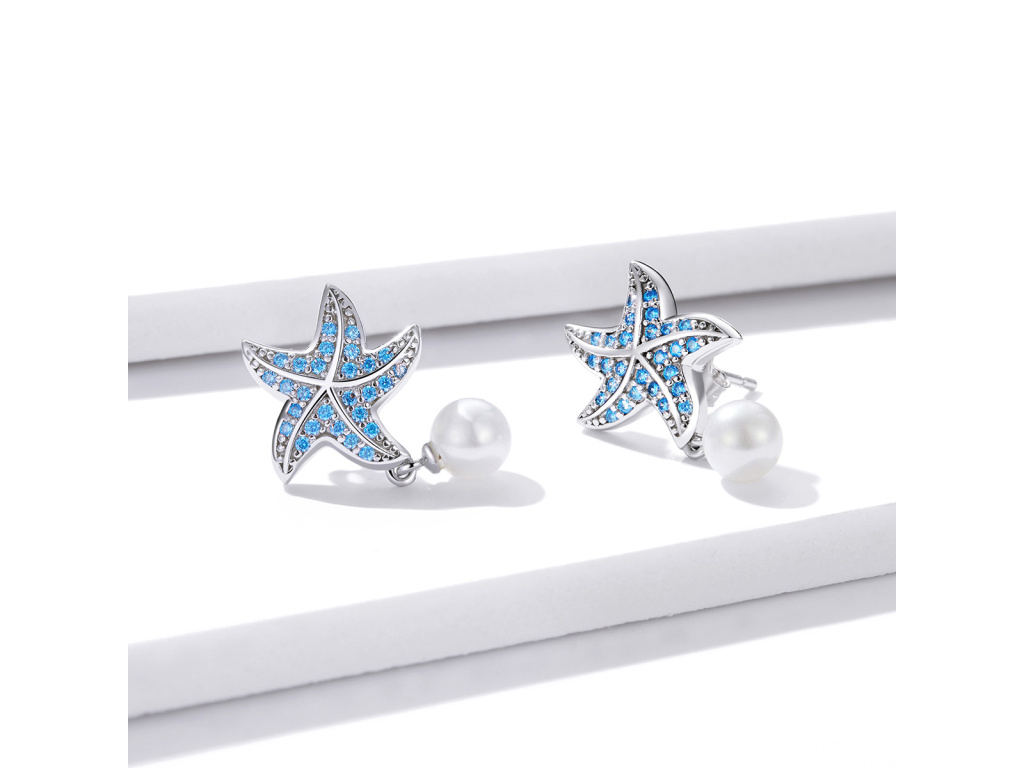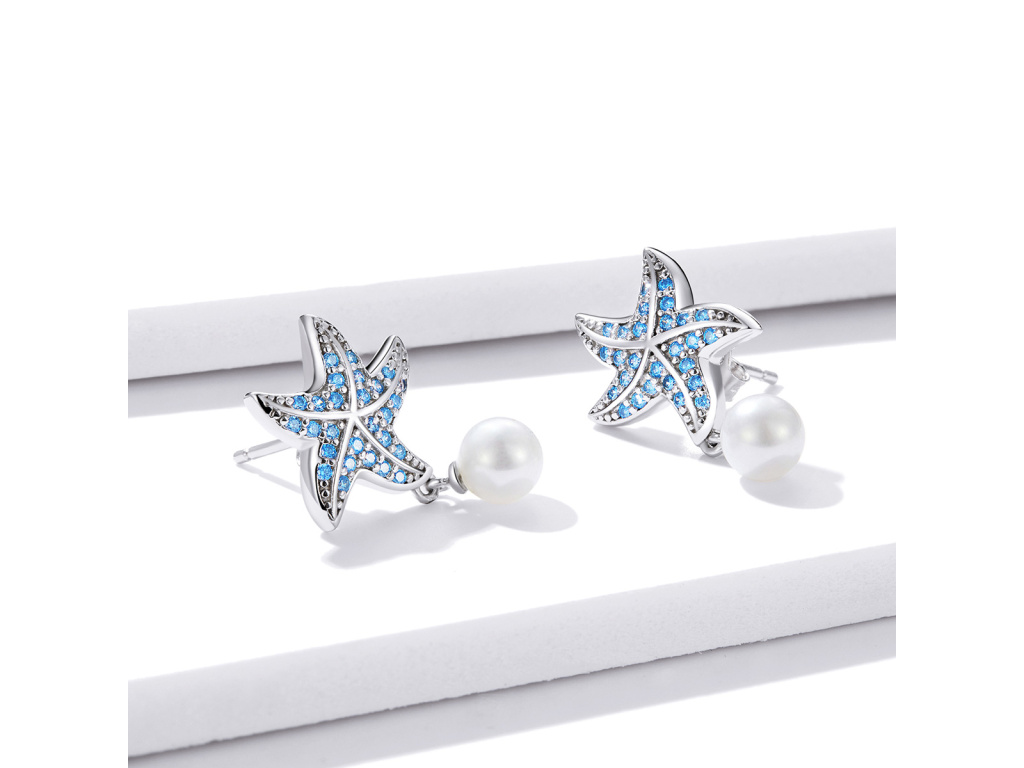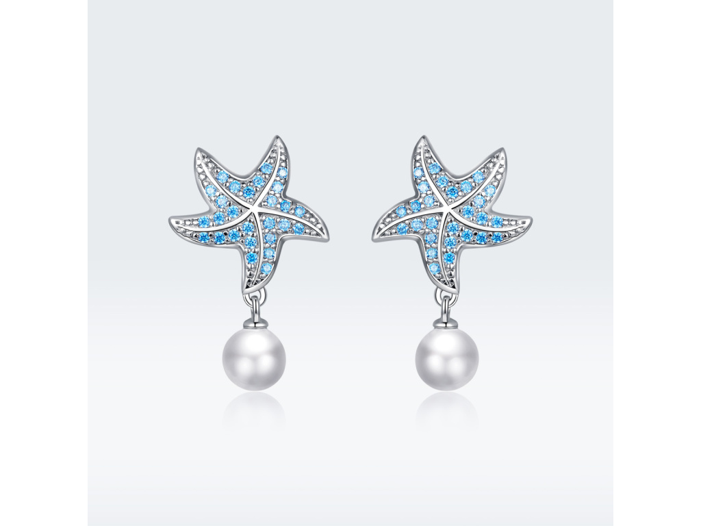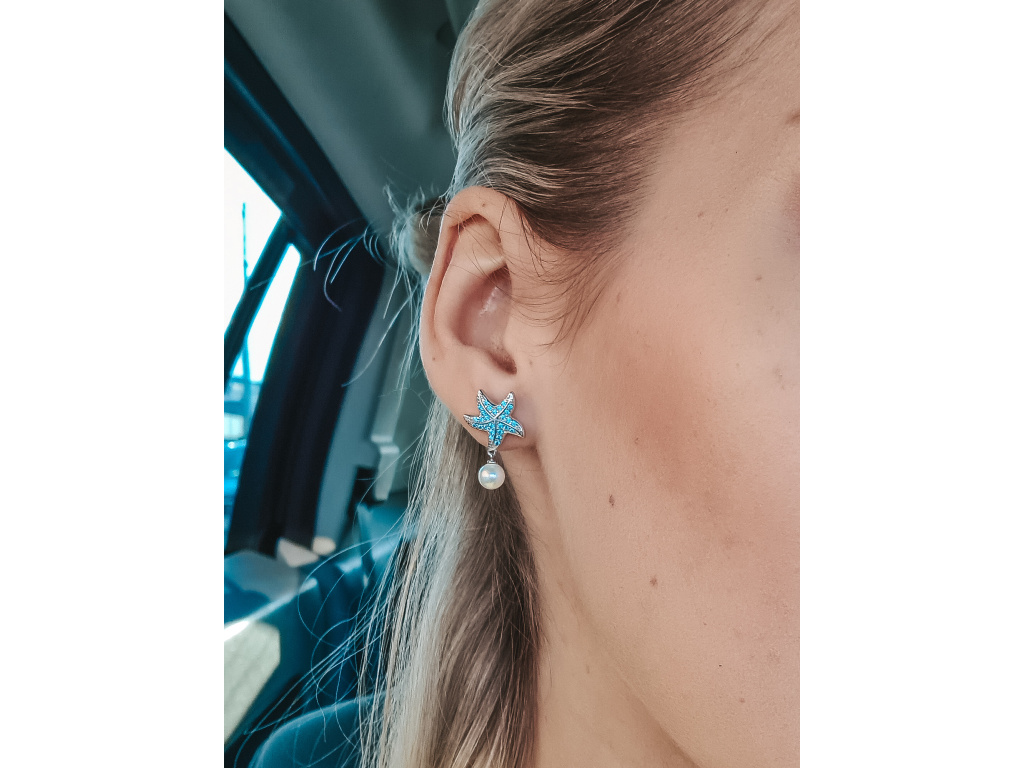 5014 Stříbrné náušnice HVĚZDICE S PERLOU Ag 925; ≤2,5 g.
