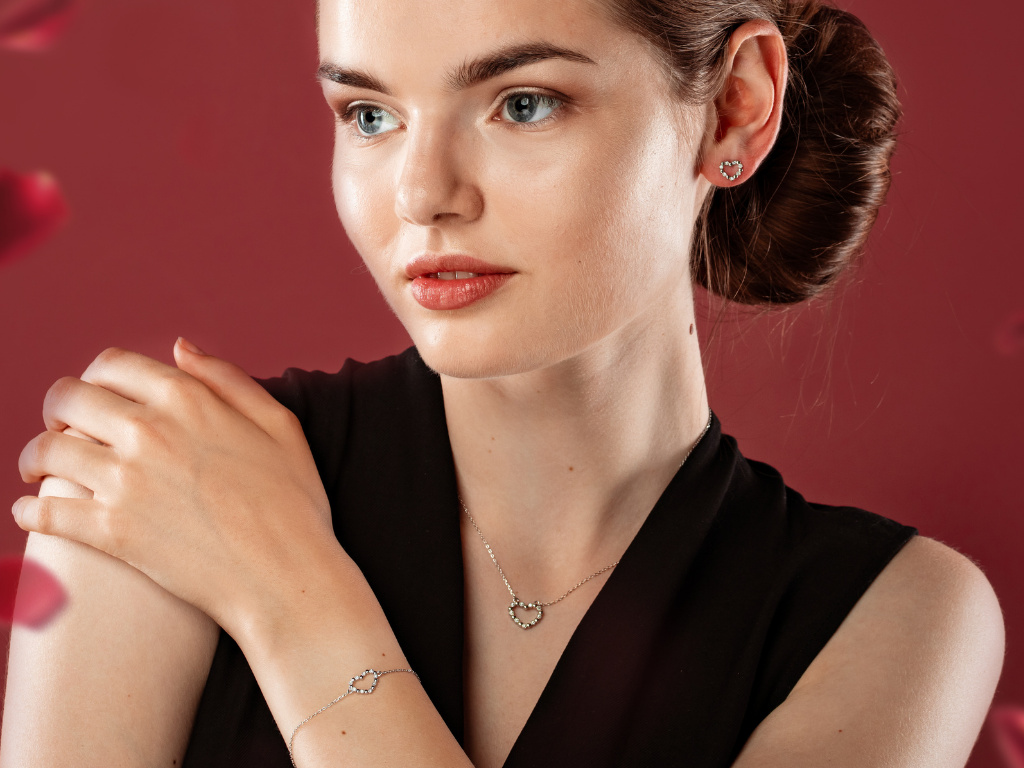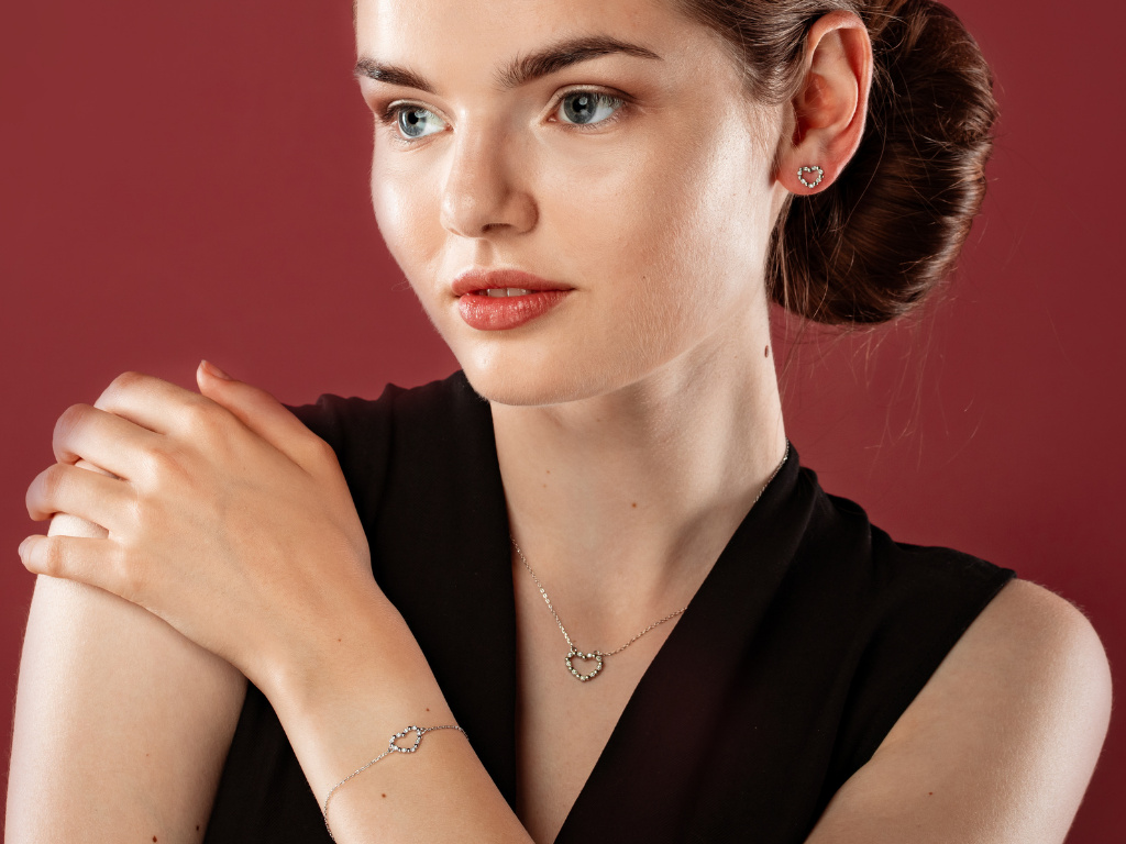 Stříbrný rhodiovaný náramek SRDÍČKO s čirými zirkony.
