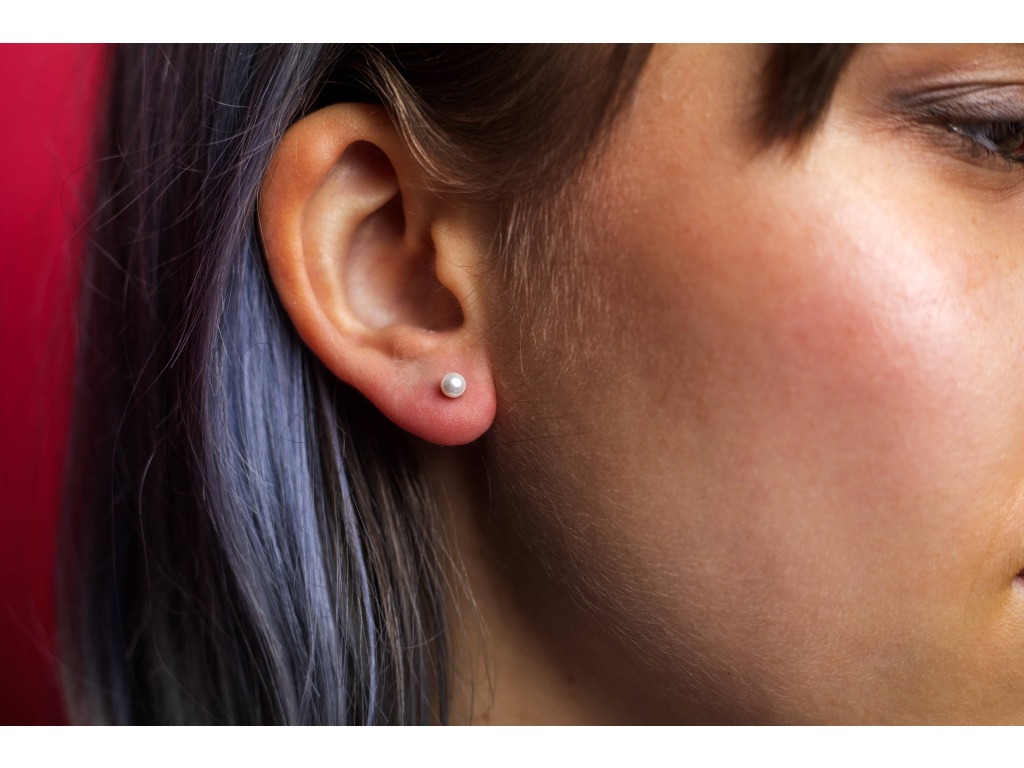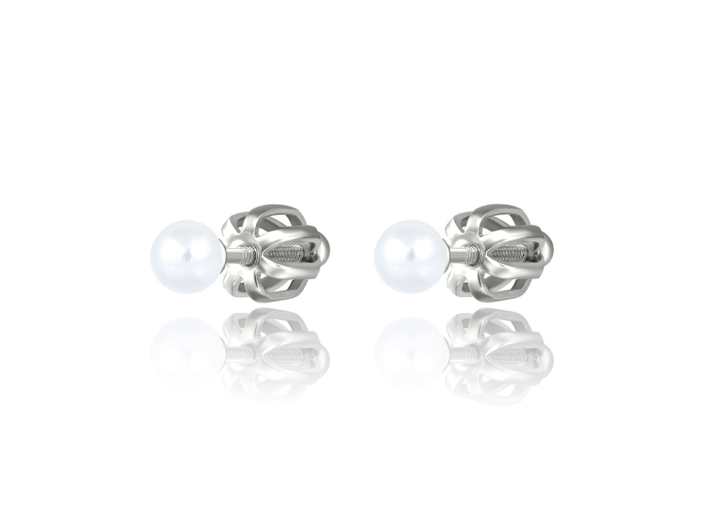 5410 Stříbrné náušnice na šroubek 3mm SHELL PERLY Ag 925; ≤0,7 g.