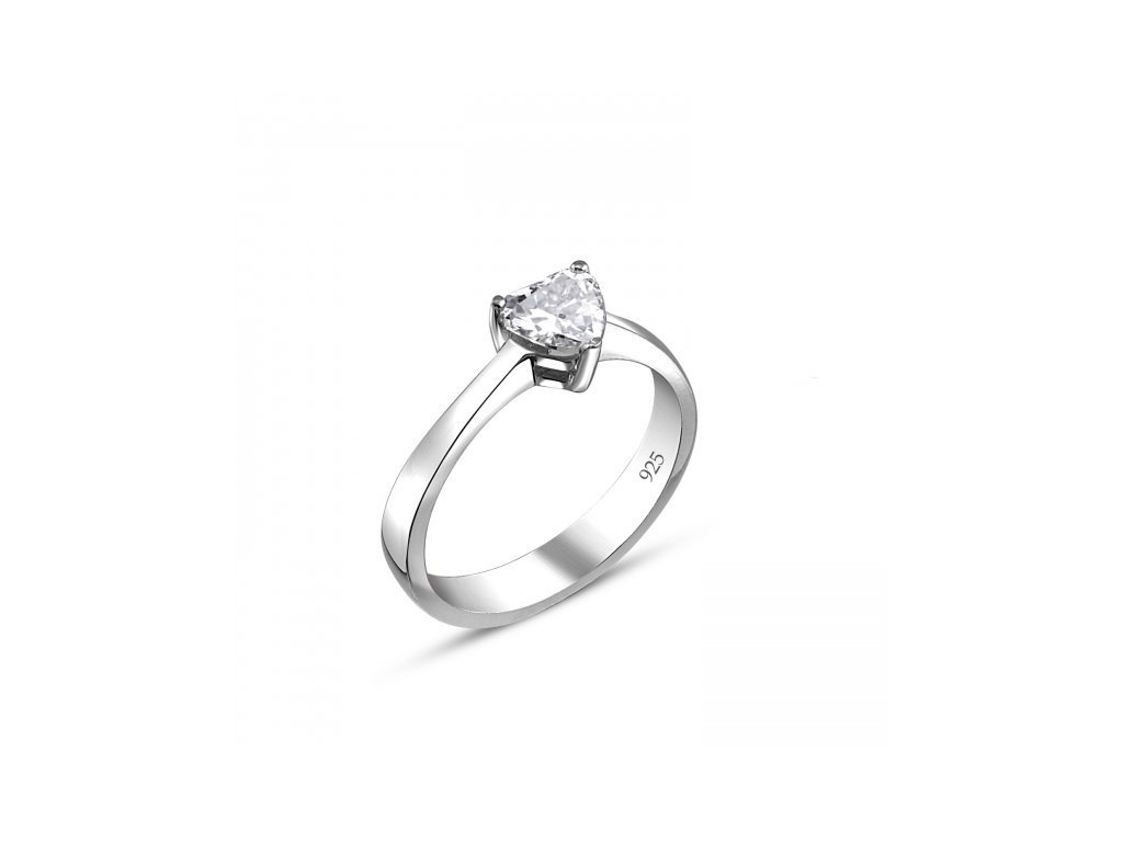 Stříbrný solitérní prsten s čirým Swarovski zirkonem ve tvaru srdce.