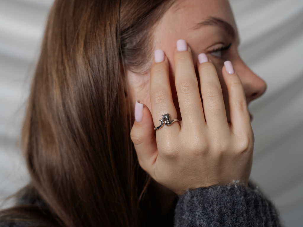 6091 Stříbrný prsten KOČKA Ag 925; ≤2,2 g.