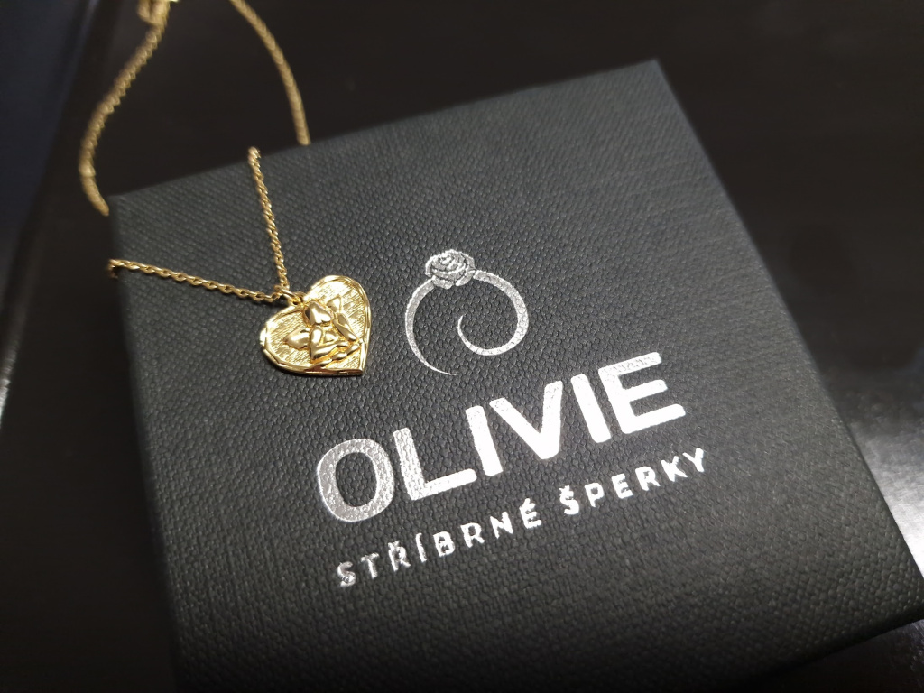 STŘÍBRNÝ NÁHRDELNÍK ZLATÉ ANDĚLSKÉ SRDCE