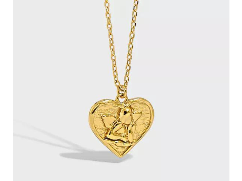 • Jedinečný design pozlaceného náhrdelníku s přívěskem anděla uvnitř srdíčka.