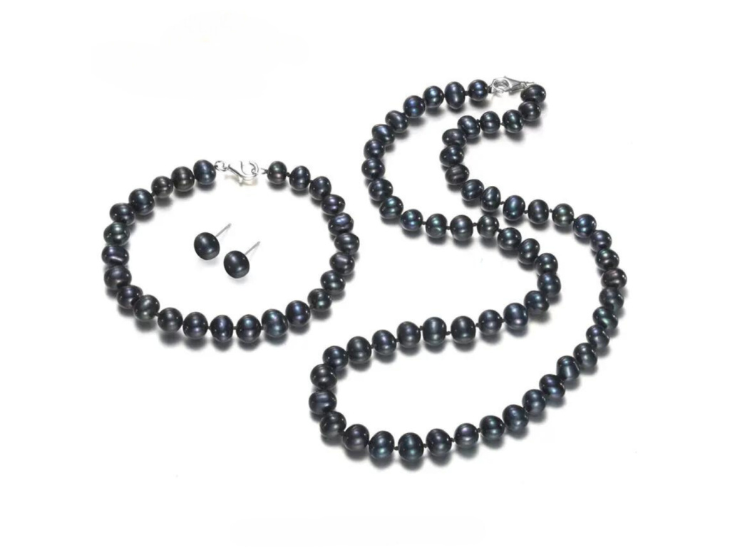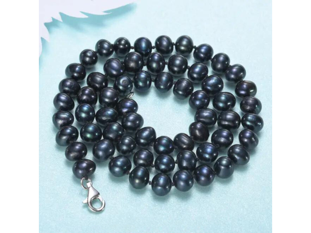 7603 Sada černých sladkovodních perel POTATO Ag 925; ≤42 g.