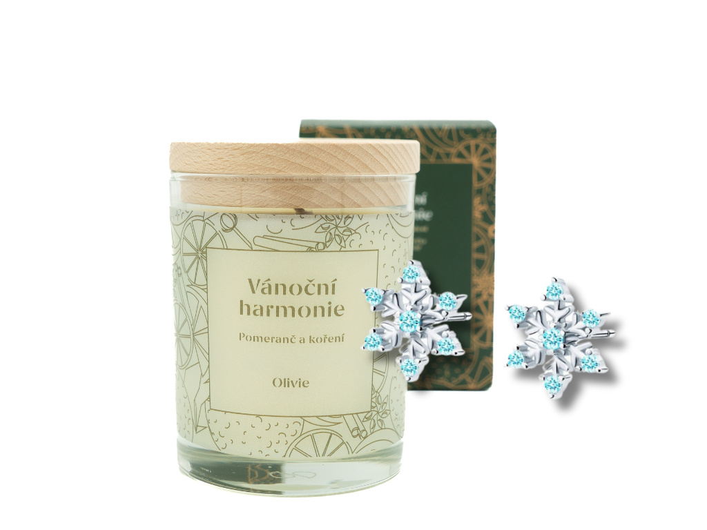 100% přírodní složení sójové svíčky a esenciálních olejů skrývající výjimečné náušnice s motivem sněhové vločky s modrými zirkony. Oslňující vůně pomeranče, která patří mezi nejoblíbenější. Tato svíčka je dokonalým dárkem pro jakoukoliv příležitost. Zapálením svíčky se celá místnost zahalí do příjemné vůně a nádherné náušnice poté dodají světlu ještě více lesku. OLIVIE přináší ručně vyráběné svíčky s ukrytými stříbrnými šperky, které okouzlí vaše smysly.