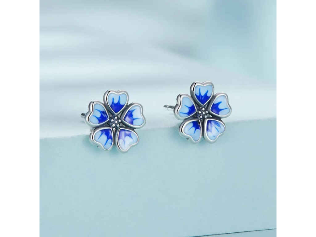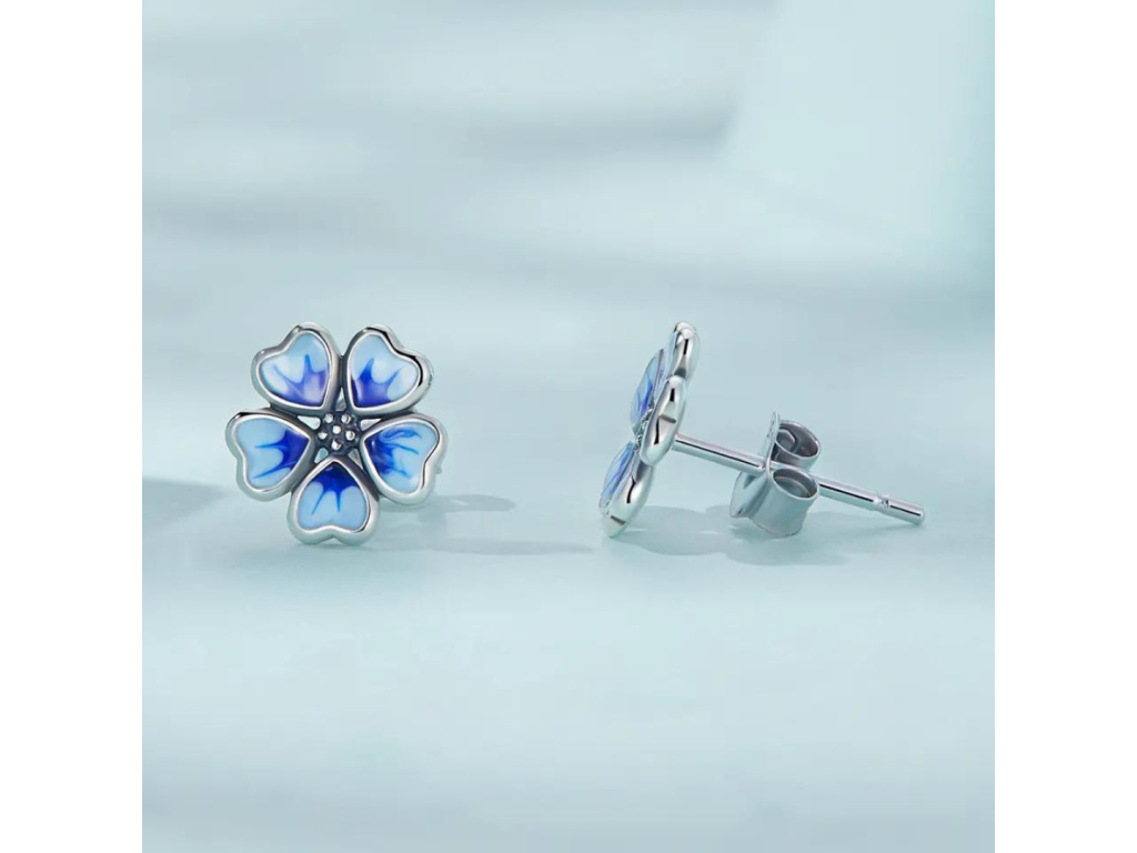 Stříbrné náušnice s modrým květem.