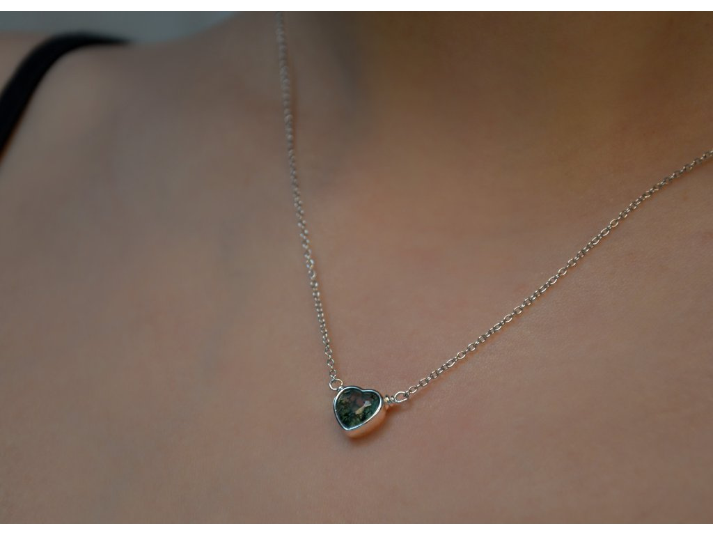 Parametry: průměr kamene 6 mm; typ: pecky; zapínání: puzeta; Ag 925/1000; povrch: rhodium; hmotnost ≤1 g. - Stříbrný náhrdelník MECHOVÝ ACHÁT – solitérní přívěsek s kamenem 7 × 7 mm na jemném řetízku; ideální i pro vrstvení.