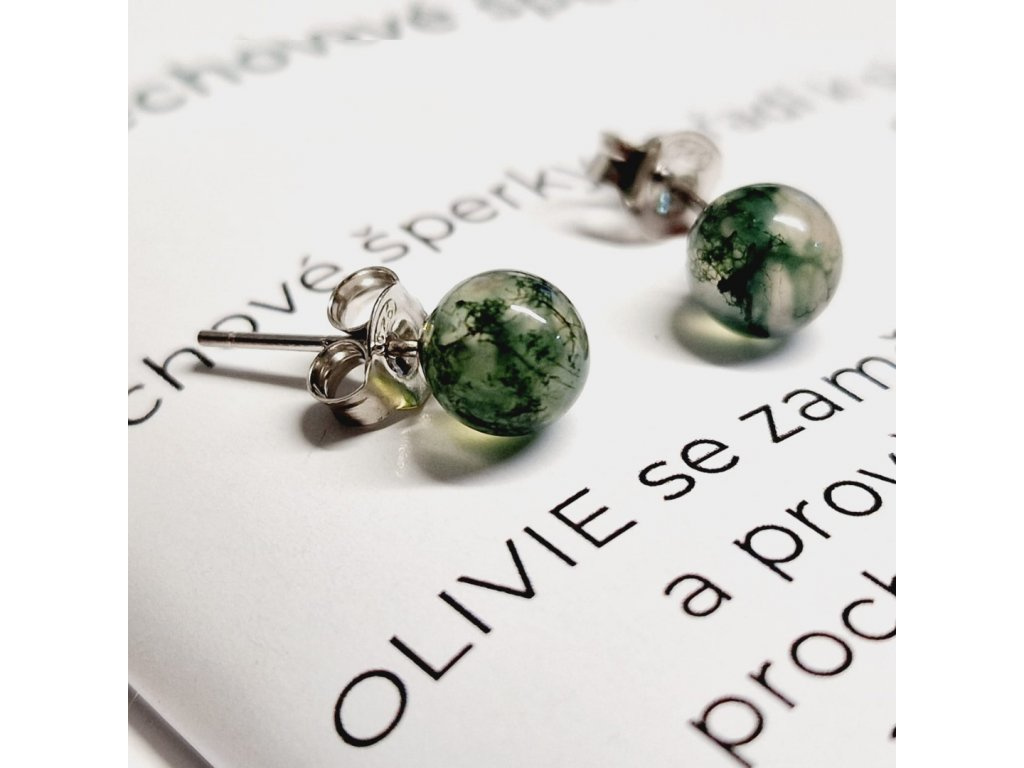- Stříbrné náušnice MECHOVÝ ACHÁT – pecky – minimalistické pecky s přírodním kamenem; pohodlné zapínání na puzetu.