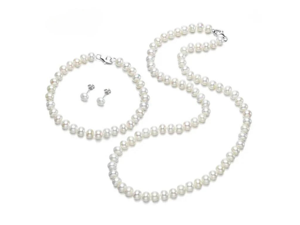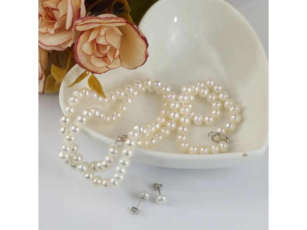 8195 Sada pravých bílých perel BUTTON AAA Ag 925; ≤44 g.