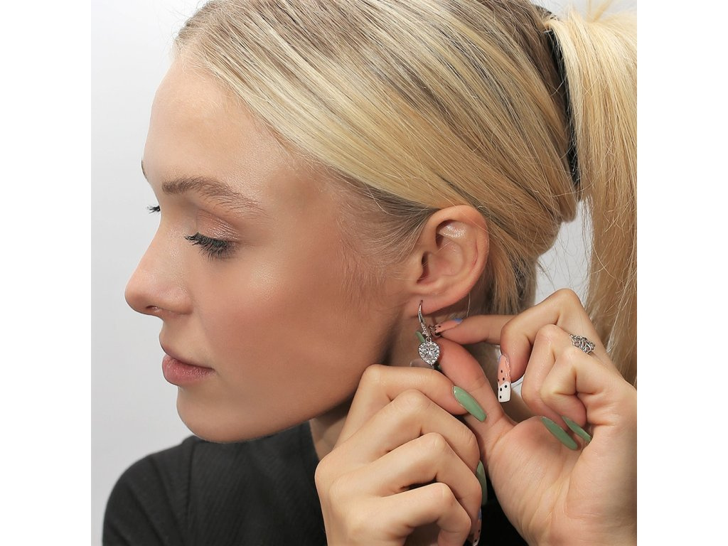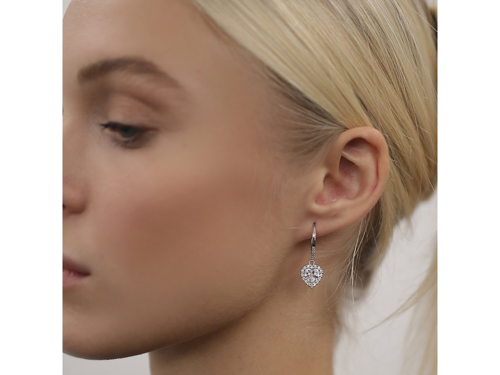 Náušnice jsou vyrobené ze stříbra 925, disponují čirými zirkony a povrchovou úpravou rhodiem.