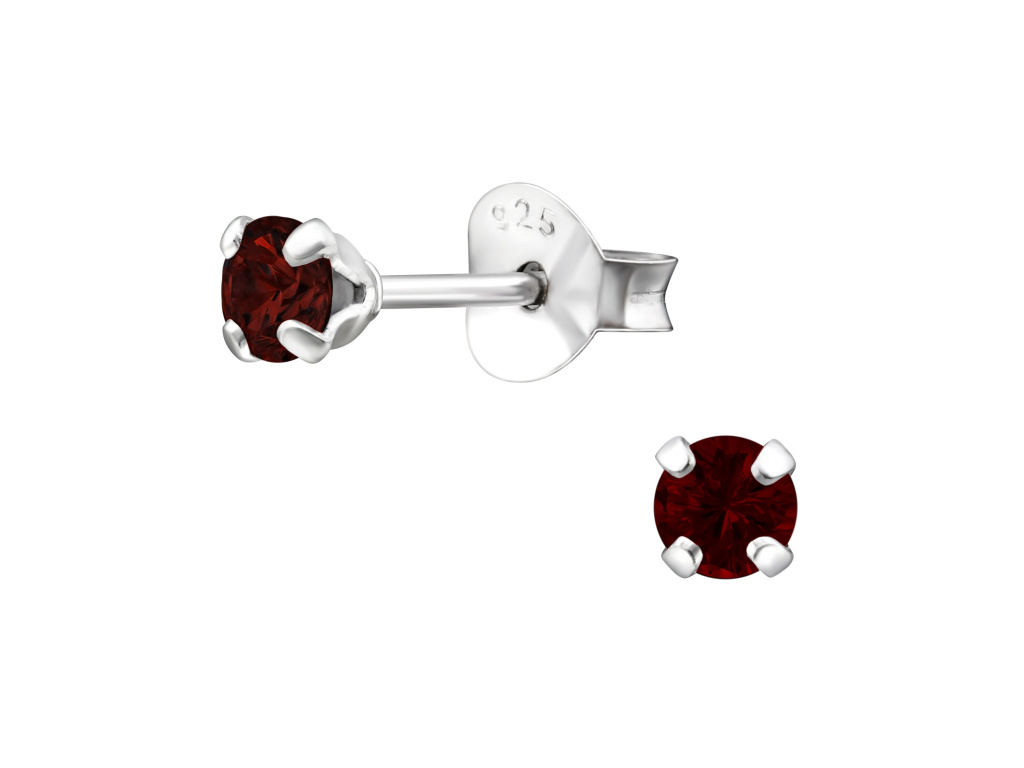 STŘÍBRNÉ 3mm NÁUŠNICE GARNET