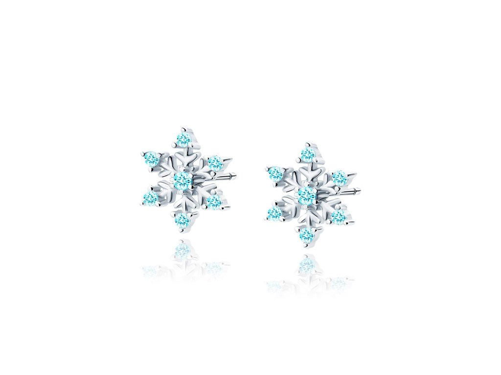 • Stříbrné náušnice sněhová vločky s modrými zirkony.