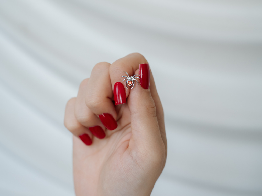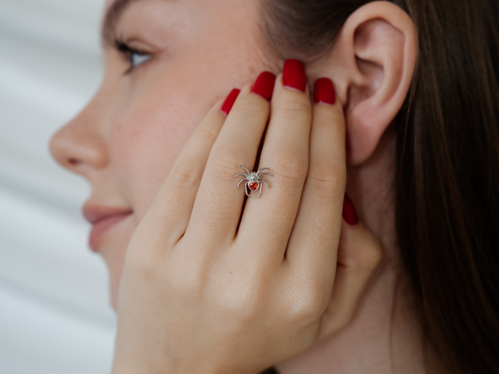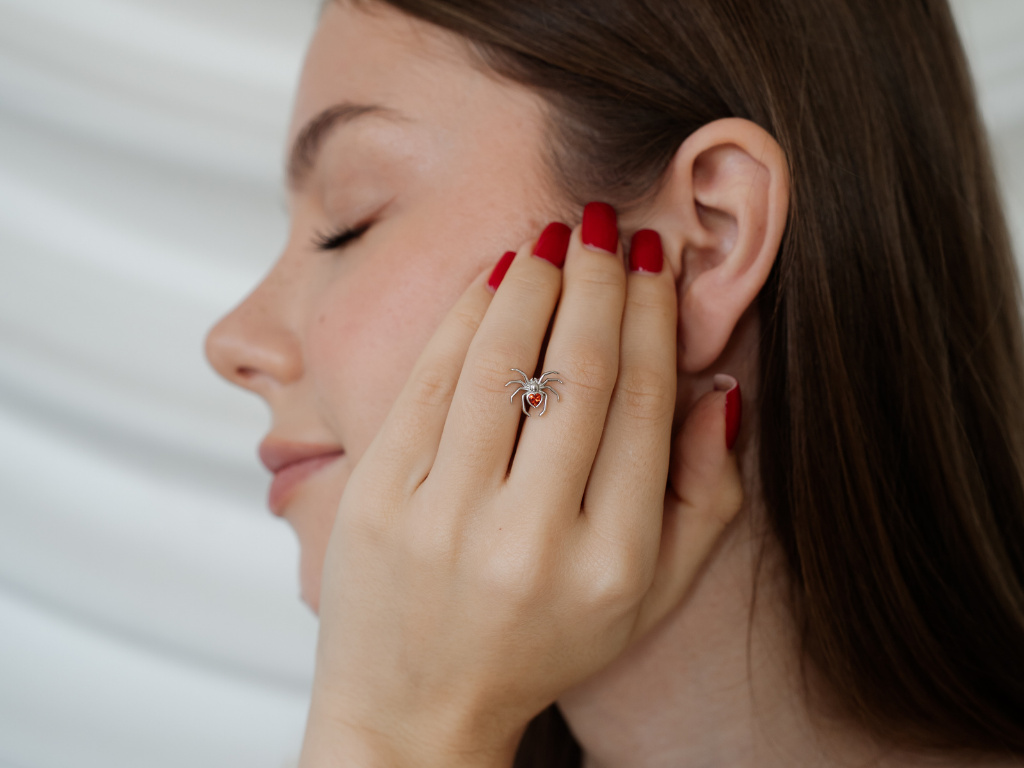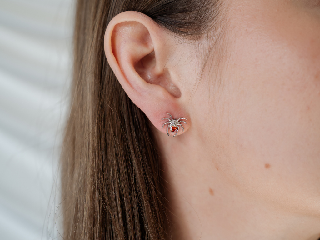 Stříbrné náušnice PAVOUK s červeným srdíčkem. Rozměry: 10,7 x 12,5 mm, zapínání na puzetu. Náušnice jsou rhodiované, vyrobené ze stříbra ryzosti 925/1000.