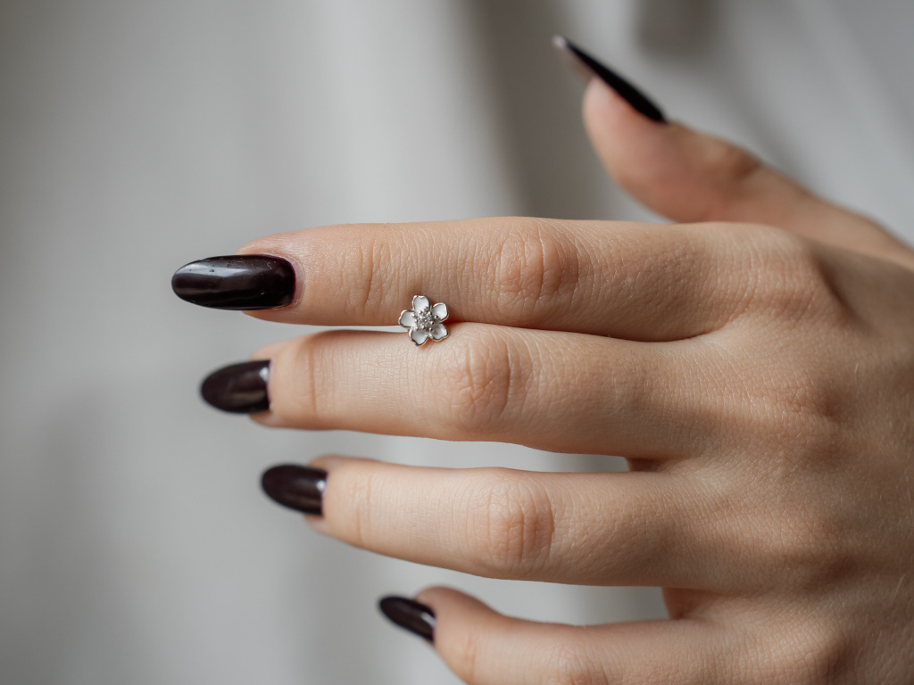 Povrchová úprava: rhodium + bílý smalt.