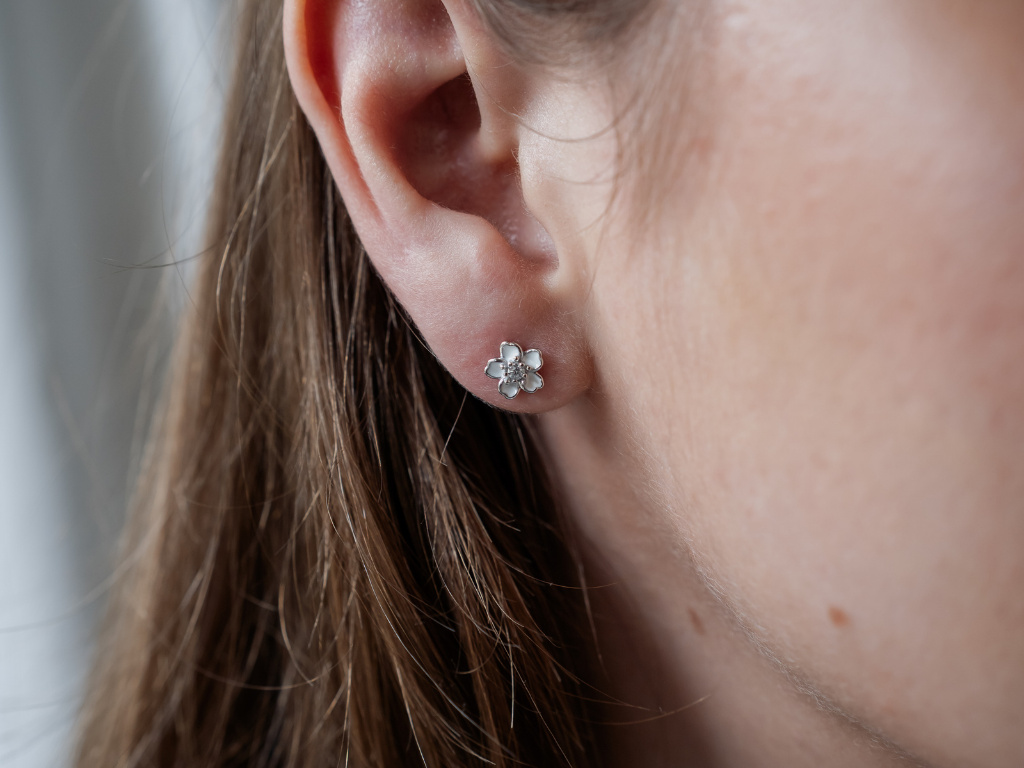 9378 Stříbrné náušnice BÍLÝ KVÍTEK Ag 925; ≤0,8 g.