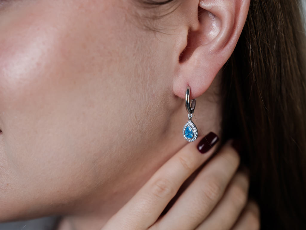 STŘÍBRNÉ NÁUŠNICE KAPKA AQUAMARINE