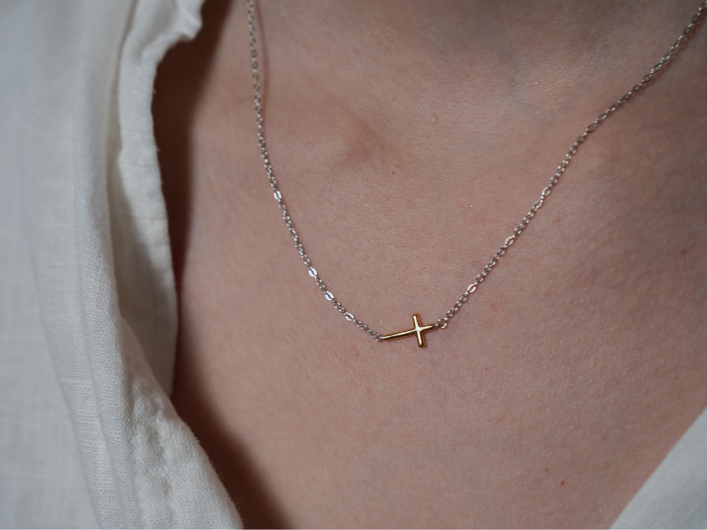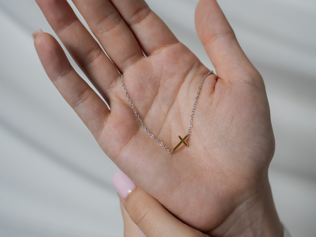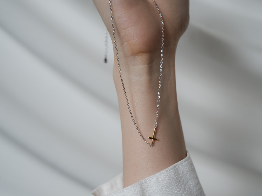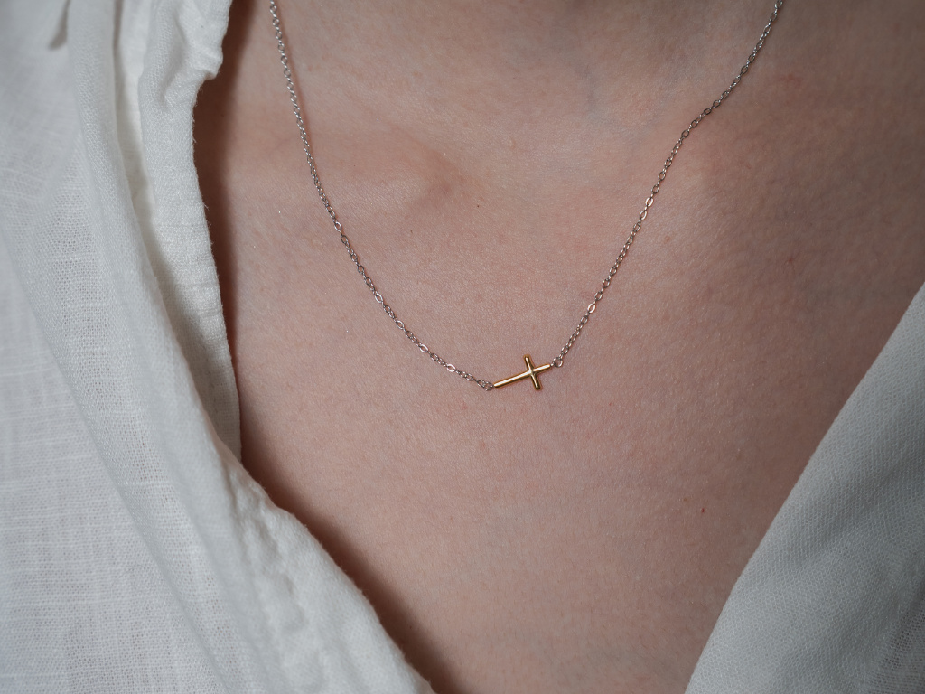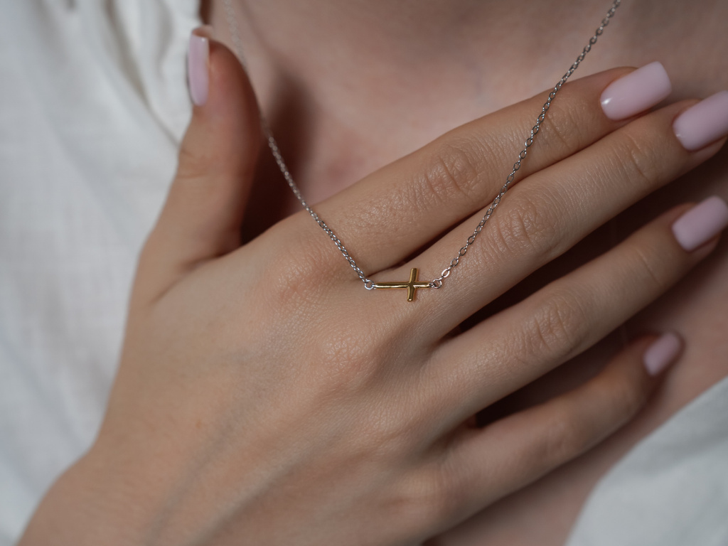 STŘÍBRNÝ NÁHRDELNÍK ZLATÝ KŘÍŽEK