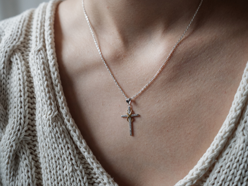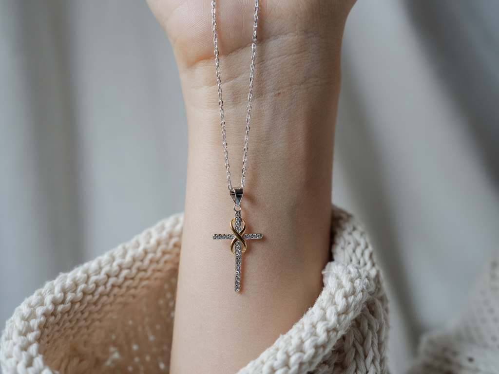 STŘÍBRNÝ PŘÍVĚSEK KŘÍŽEK A NEKONEČNO GOLD