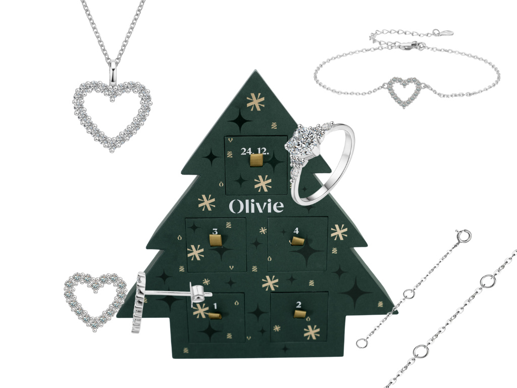 Adventní kalendář OLIVIE MOISSANITE SRDCE je dárkem pro ženu, která miluje romantiku v moderním podání. Každé otevření šuplíčku je malý svátek – plný překvapení, třpytu a výjimečnosti, které patří k nejkrásnějším zimním dnům.