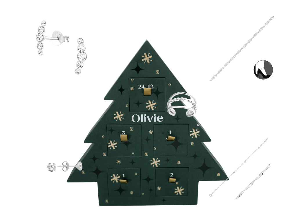 Adventní kalendář OLIVIE UNI je univerzální mix čistého minimalismu a každodenní praktičnosti. Pět šuplíčků, pět způsobů, jak doladit outfit – od jemných pecek přes výraz krystalů až po ležérní řetízek na nohu.