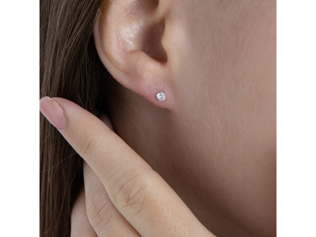 Parametry: průměr kamene 3 mm; zapínání: puzeta; kámen: čirý zirkon; materiál: Ag 925/1000; povrchová úprava: rhodium. - Pecky ZIRKON Ø 4 mm – decentní a univerzální volba do práce i do školy.