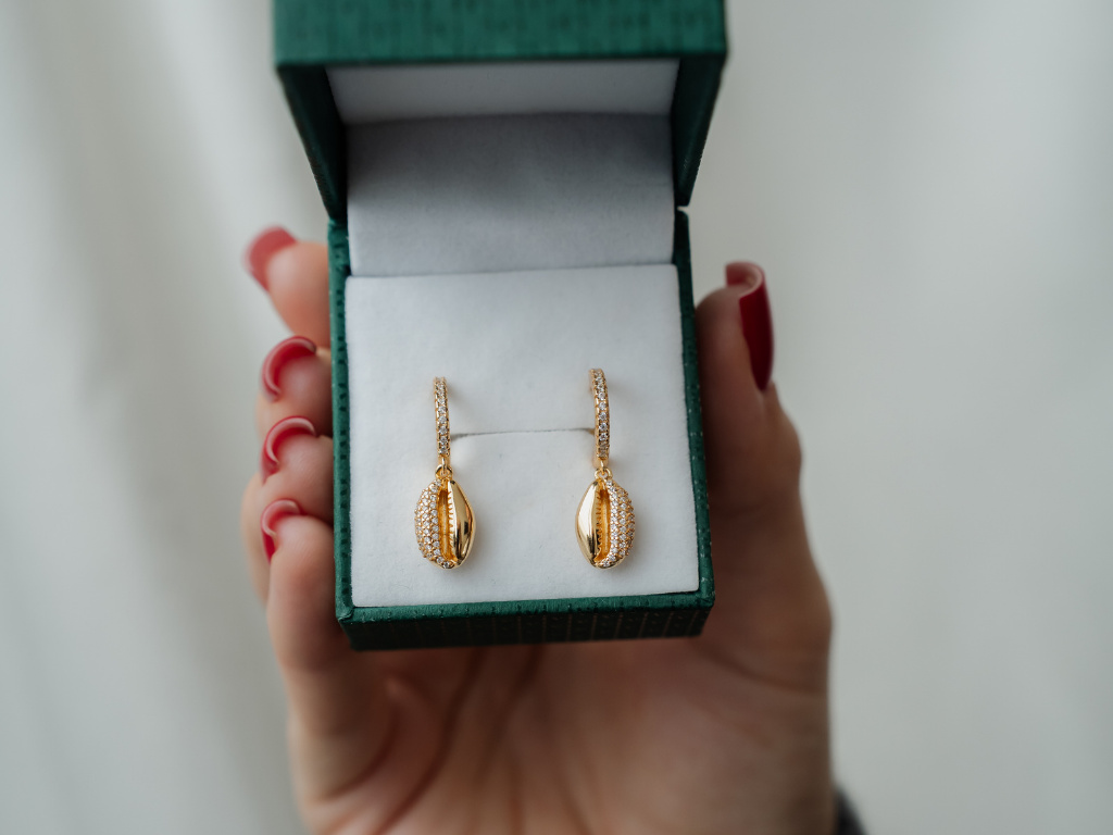 STŘÍBRNÉ NÁUŠNICE ZLATÁ MUŠLE