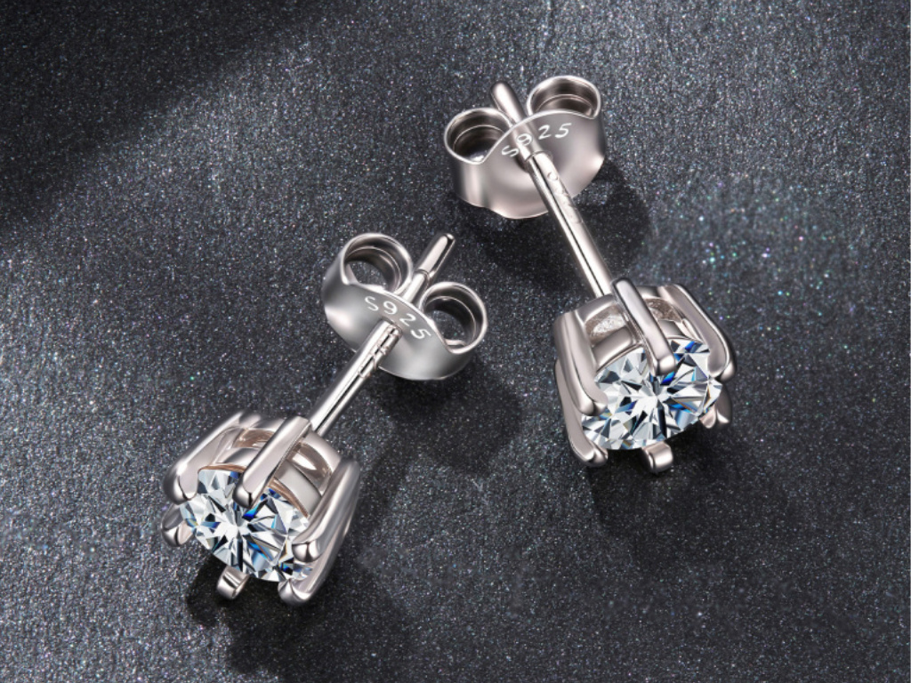 STŘÍBRNÉ NÁUŠNICE 5mm MOISSANITE
