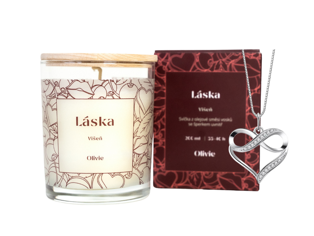 9988 Svíčka Láska se stříbrným náhrdelníkem SRDCE & NEKONEČNO Ag 925; ≤2,2 g.