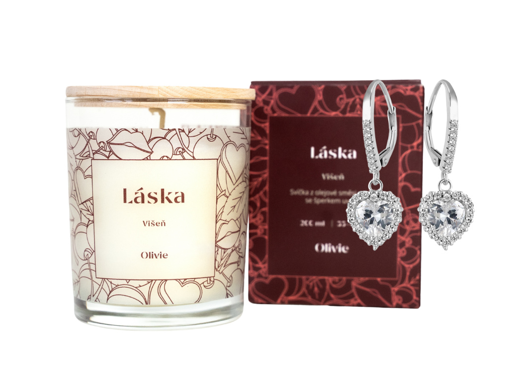 9989 Svíčka Láska se stříbrnými náušnicemi SRDÍČKA Ag 925; ≤5,1 g.