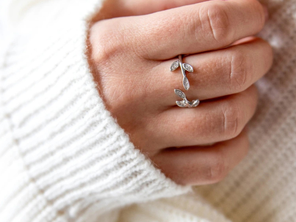 LÁSKA SE STŘÍBRNÝM NASTAVITELNÝM PRSTENEM VĚTVIČKA