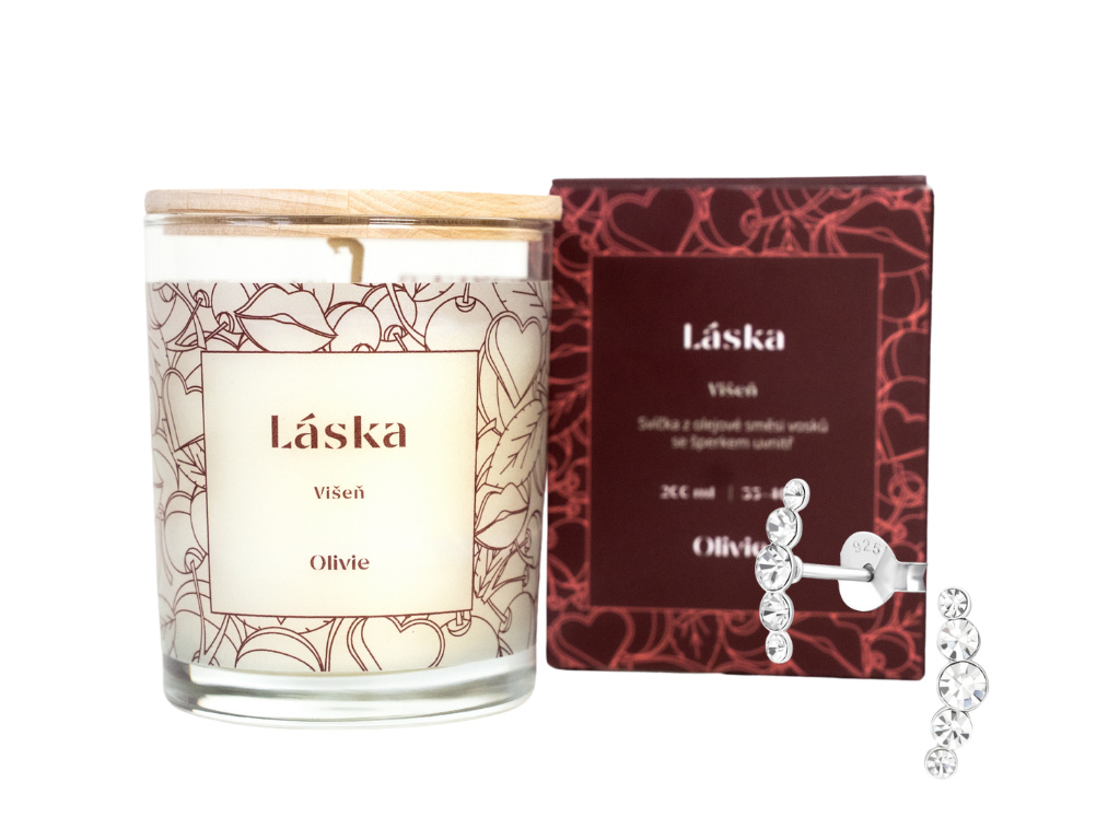 9995 Svíčka Láska se stříbrnými náušnicemi KRYSTÁLKY Ag 925