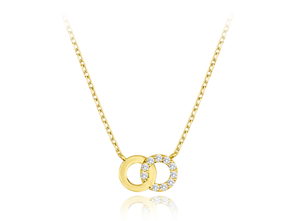 Elegantní zlatý náhrdelník spojené kroužky s bílými zirkony Au 585/1000