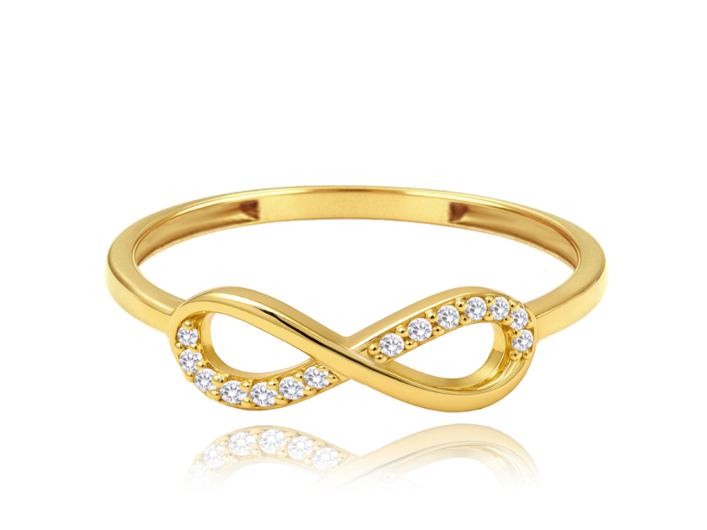 Elegantní zlatý prsten nekonečno s bílými zirkony Au 585/1000
