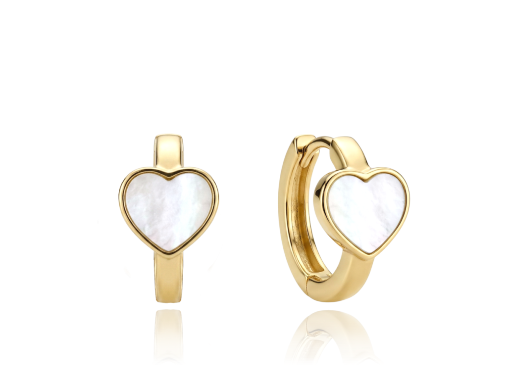 MINET Zlaté náušnice srdíčka s bílou perletí Au 585/1000