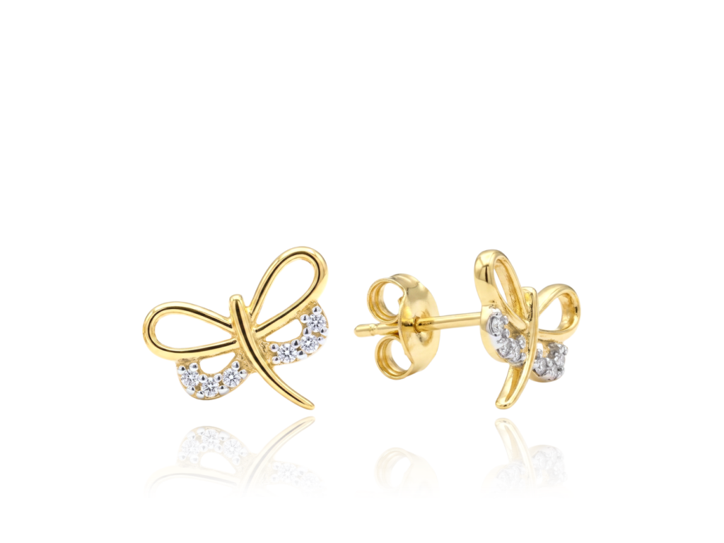 MINET Zlaté náušnice vážky s bílými zirkony Au 585/1000