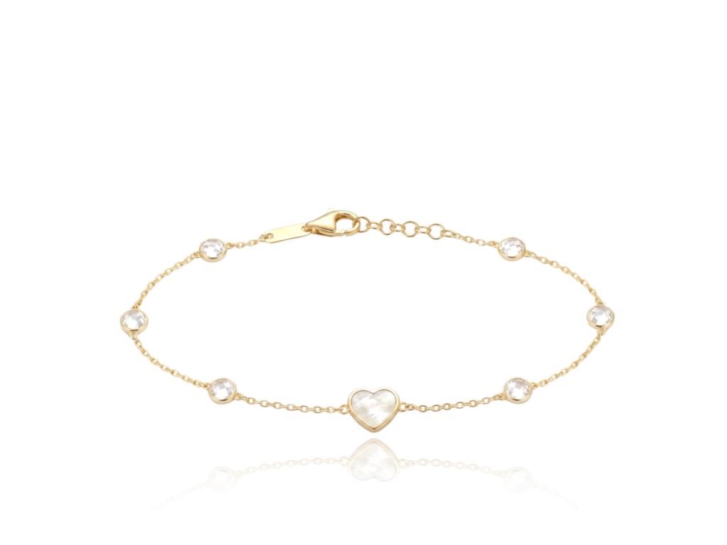 MINET Zlatý náramek srdíčko s bílou perletí a bílými zirkony Au 585/1000